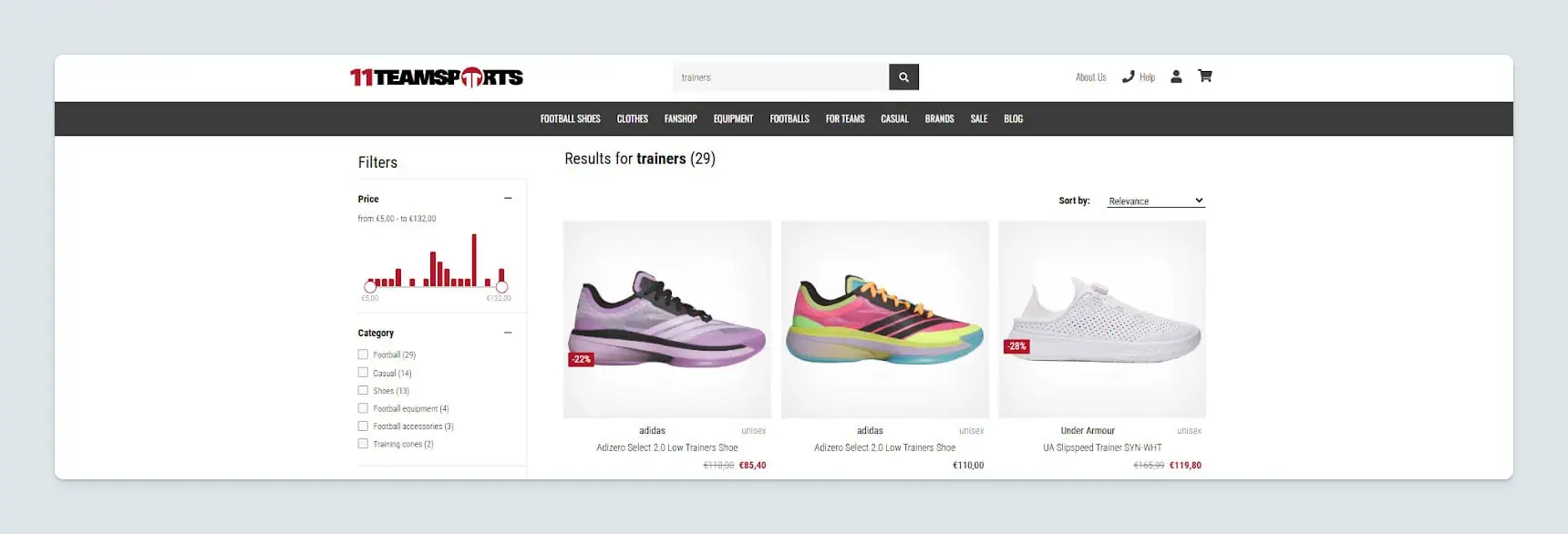 Ak zákazník vyhľadá „sneakers“, ale na vašom webe ich máte vedené ako „trainers“, jeho dopyt by nevrátil žiadne výsledky. Keď však medzi týmito výrazmi nastavíte vzťah synonym, oba dopyty zobrazia relevantné výsledky.